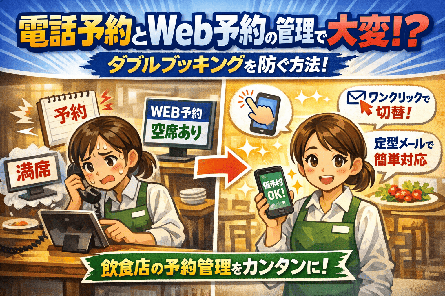 電話で予約が埋まったのに、Web側が「空席あり」のままだと、、、